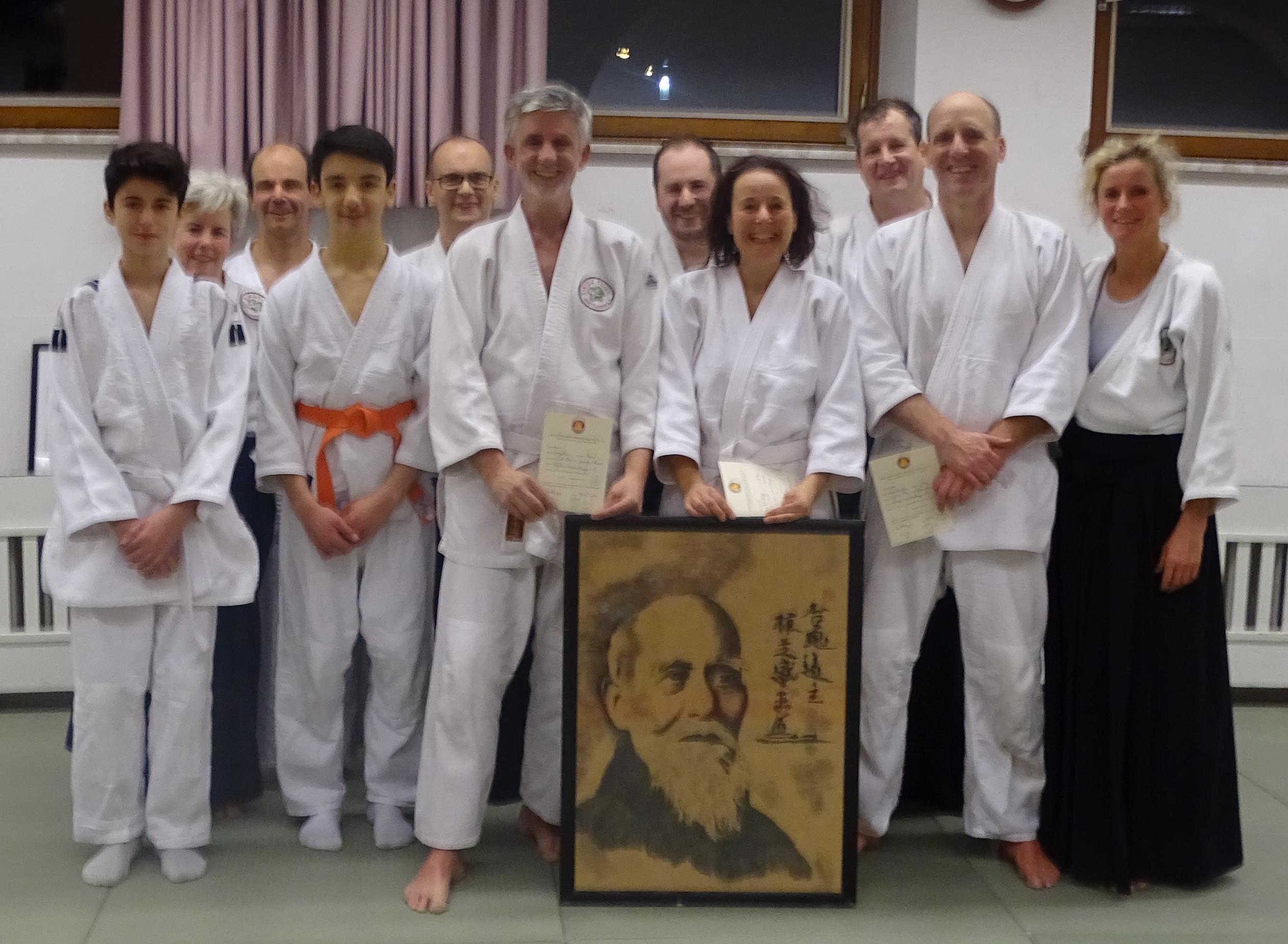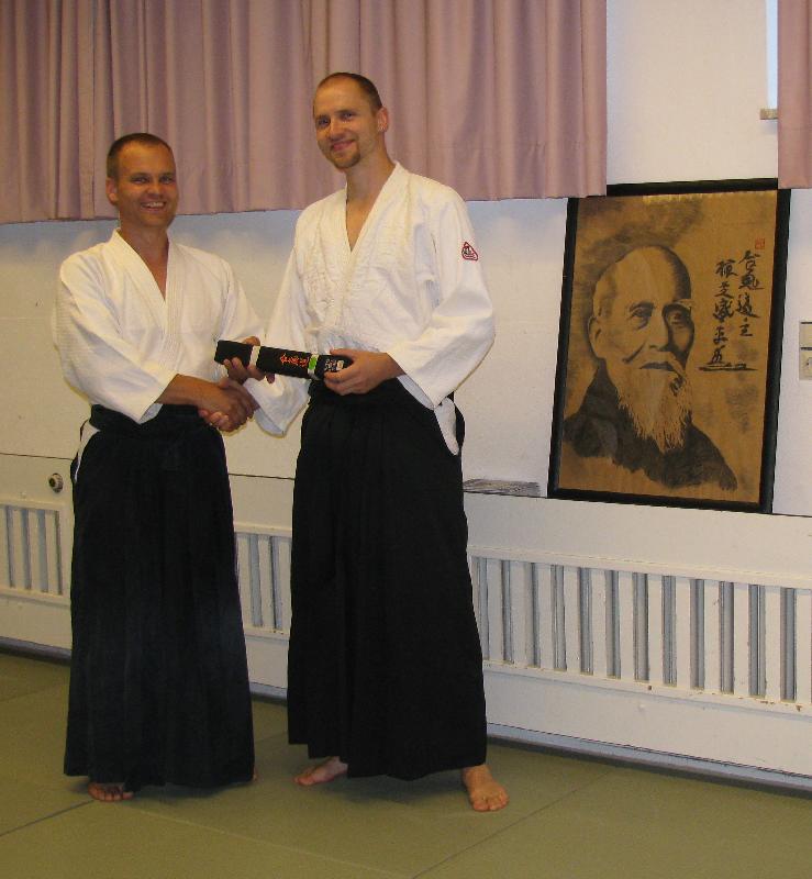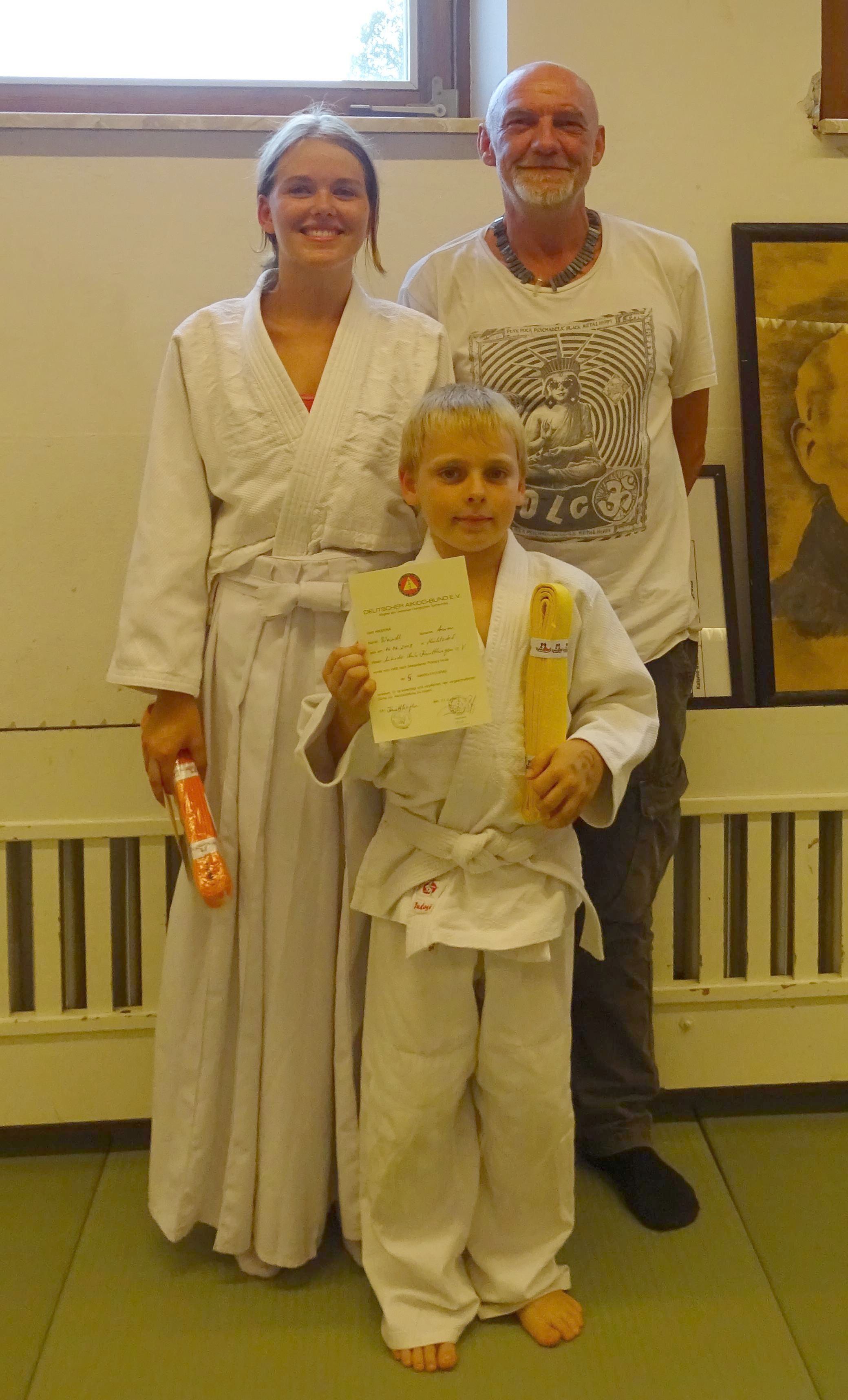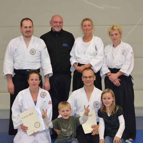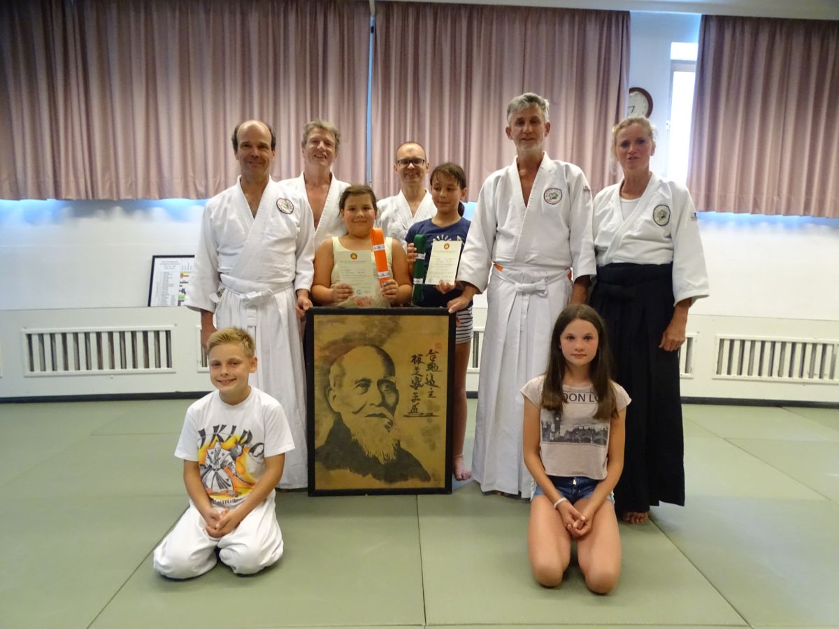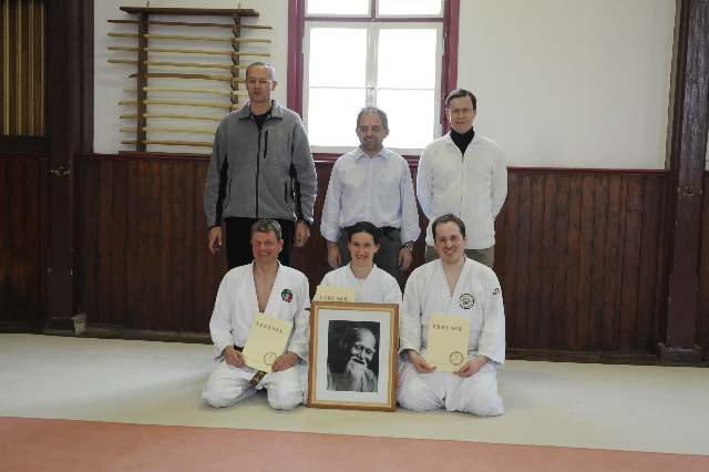 den angestrebten Gürtel in Empfang nehmen und somit einen weiteren Schritt auf dem Weg des Aikido zurücklegen.